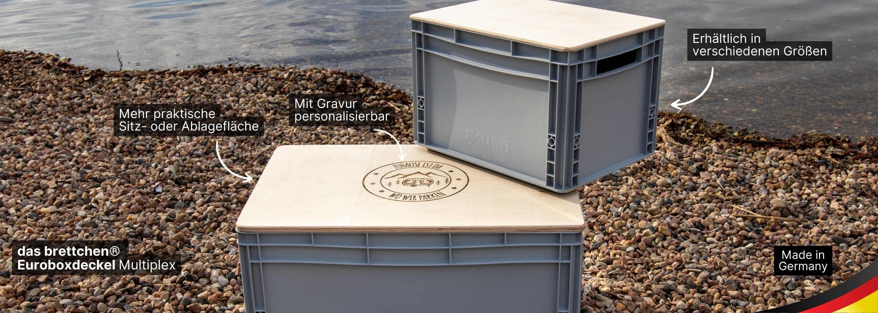 Eurobox Deckel aus Multiplex – personalisierbar | Holz Abdeckung für Eurobox | Camping Zubehör | Hocker | Abdeckung Camping Kiste