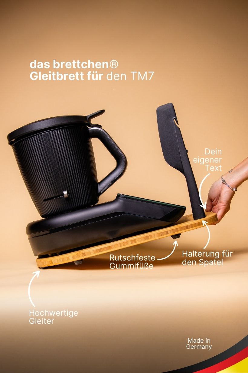 Ob als praktische Alltagshilfe, stilvolles Küchenaccessoire oder als personalisiertes Geschenk – das Gleitbrett für Thermomix® TM7 ist ein unverzichtbares Zubehör für jeden, der seinen Thermomix® liebt. Es vereint Funktionalität, Qualität und Design auf höchstem Niveau und sorgt dafür, dass du beim Kochen, Backen und Genießen noch mehr Freude hast.