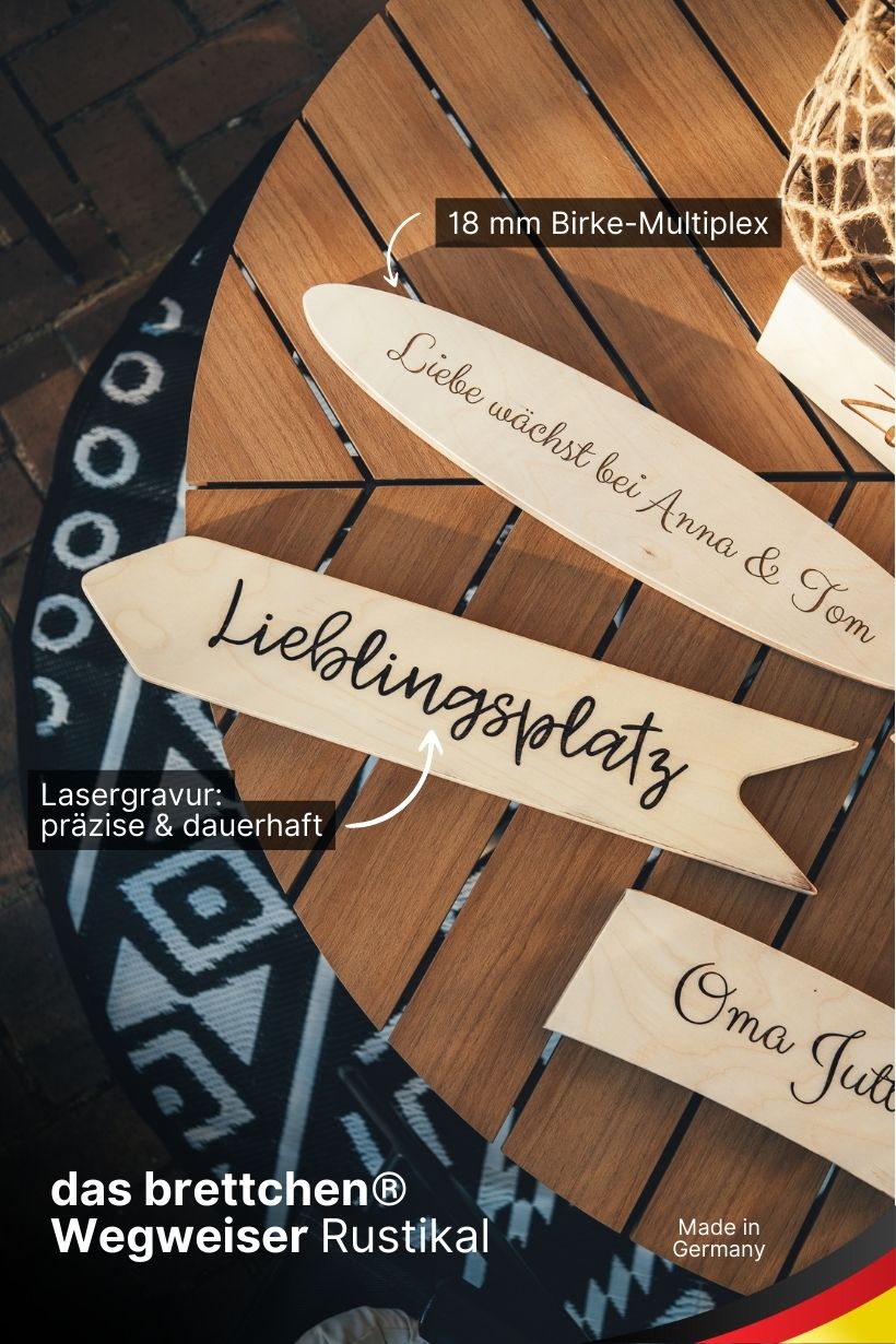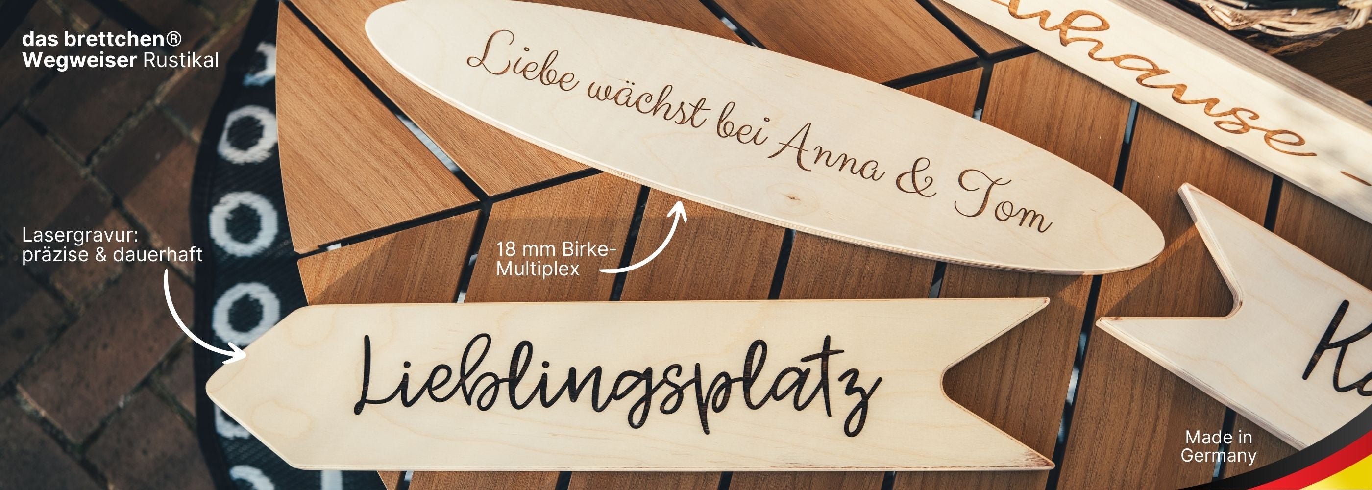 - Handgefertigter Wegweiser aus hochwertigem Birkenholz